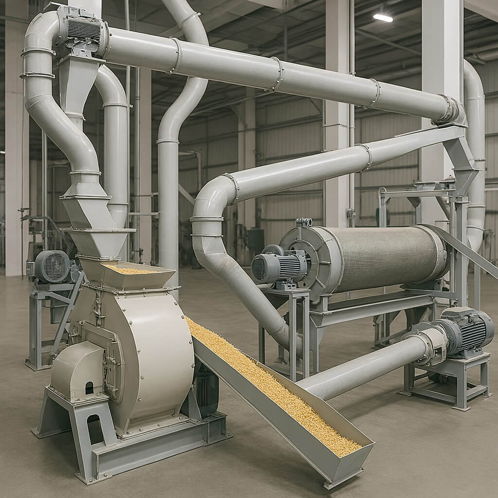 Rotary feeders, hammer mills, and screw conveyors integrated with precision
